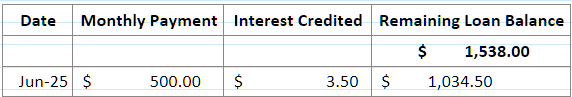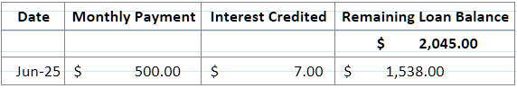 In July 2025, I made a 2nd $500 payment to the loan, further reducing the loan as follows: