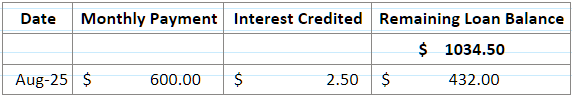 In early August 2025, loan payment was increased to $600, due to an increase in dividends earned.
