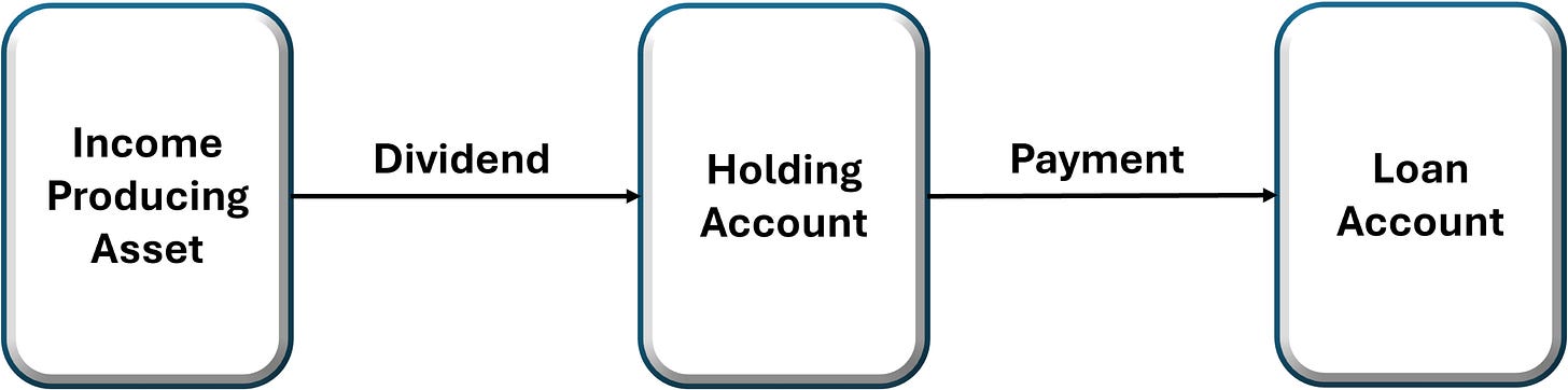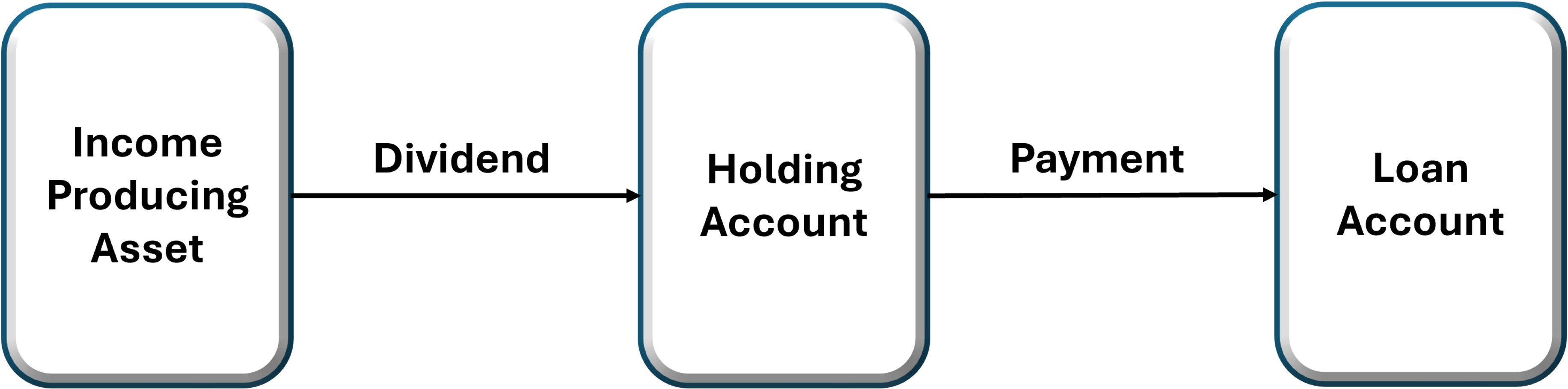 My automatic loan payment system leverages income generating assets to make monthly loan payments. Simply put, as my investments generate income, I use the income to pay down my loans.